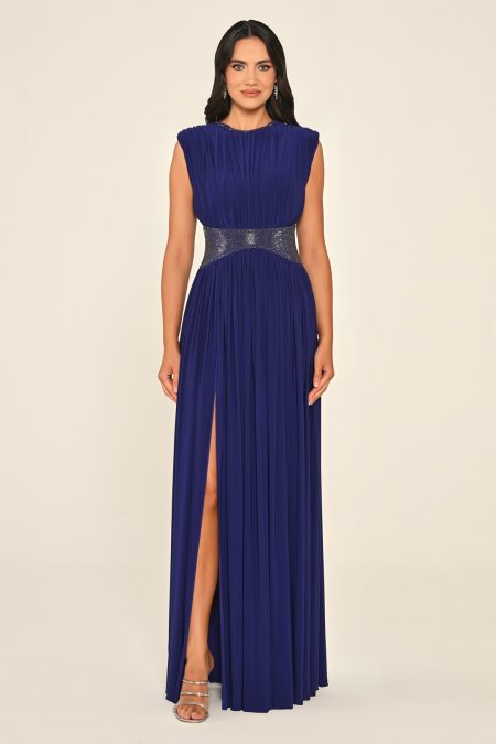 فستان من التل بخصر مختلف مفتوح فتحتين من الامام