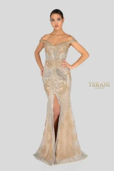 فستان سهرة مذهل ، له فتحة امامية تبدأ من اعلى الفخد وتى اخر الساق ، يشبه حورية البحر في تصميمه الرفيع الذي يبرز الخصر والارداف من تصميم الامريكي تيراني كوتور