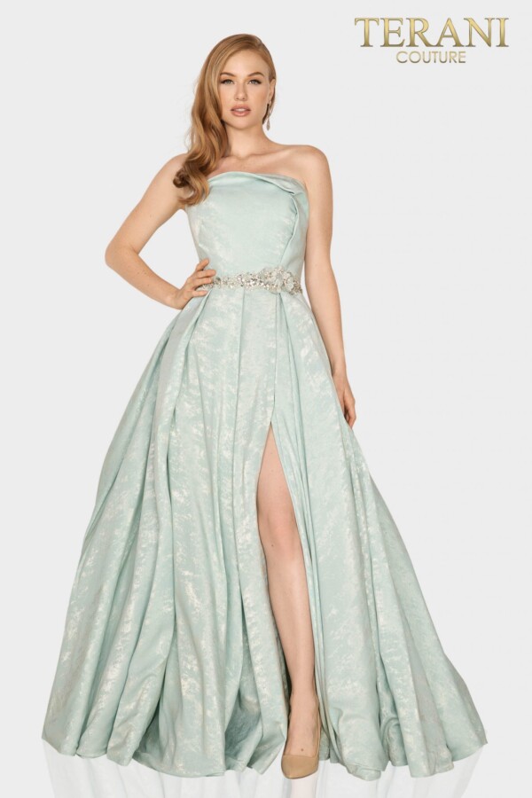 لكل من تبحث عن الأناقة والرقي ، اخترنا لكِ اطلالة فريدة من تصميم تيراني كوتور فستان مكشوف الأكتاف مصنوع من نسيج الجلد المدبوغ مع تنورة كرة مطوية مع طية خفية