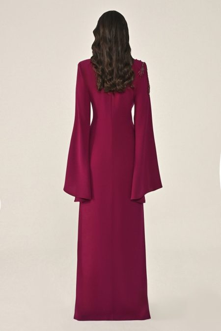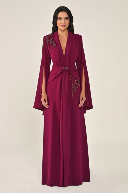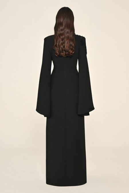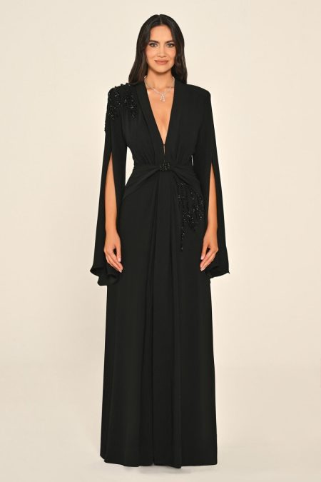 فستان من الكريب باكمام طويلة وقصة صدرV