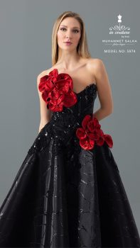 تألفي بفستان توب باللون الأسود مزين بورود باللون الأحمر من كولكشن ان كوتور الجديد .