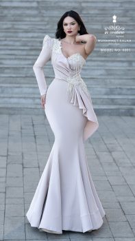 فستان من كولكشن 2025 للمصمم ان كوتور يأتي بتصميم طويل ويتميز بتفاصيل دقيقة وأنيقة متوفر الآن على تيا دريس.