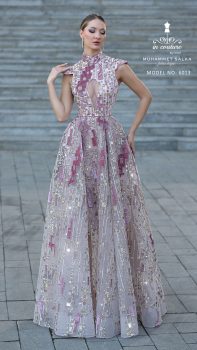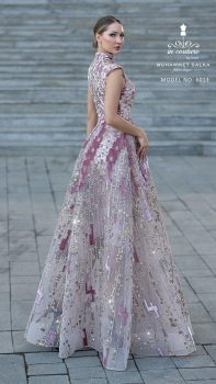 فستان من كولكشن 2025 للمصمم ان كوتور يأتي بتصميم طويل ويتميز بتفاصيل دقيقة وأنيقة متوفر الآن على تيا دريس.