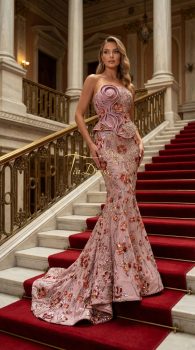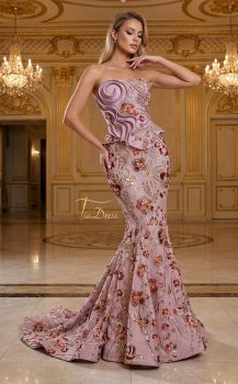 فستان توب مخصر مشغول بالكامل مرصع بالكرستال والشك تصميم المصمم محمد السلكا