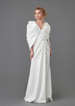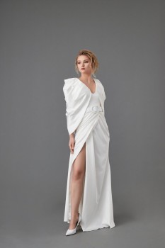 فستان مناسب للحفلات والمناسب باكمام وفتحة من الأمام بتصميم رقيق للمصصم ان كوتور متوفر بشكل حصري على تيا دريس.