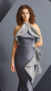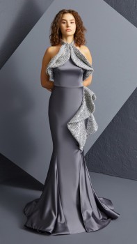 فستان سهرة طويل بتصميم أنيق للمصمم IN COUTURE ان كوتور يلبي احتياجات المرأة العصرية التي ترغب بإطلالة رائعة ومميزة.