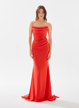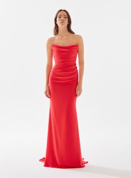 فستان طويل بدون اكمام يعرض بشكل حصري علي تيا دريس من فساتين طارق ايديز 2023