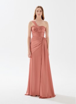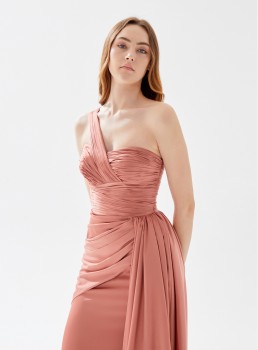 فستان طويل بكتف واحد يعرض بشكل حصري علي تيا دريس من فساتين طارق ايديز 2023