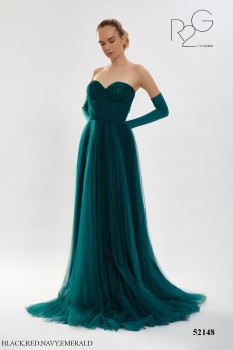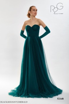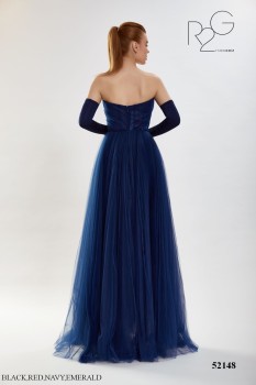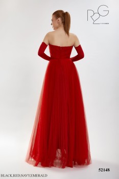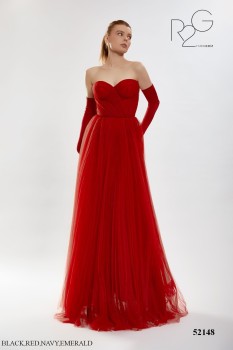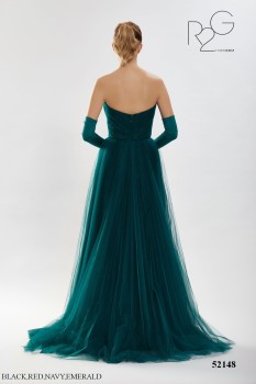 فستان بطبقات من التول الناعم ، يتميز بصدر مكشكش مع ياقة على شكل قلب بدون حمالات وظهر متوسط الارتفاع وقفازات قابلة للتمدد يعرض بشكل حصري علي تيا دريس من فساتين طارق ايديز 2023