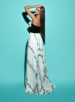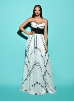 فستان سهرة من تصميم المصمم طارق ايديس بتقصة مميزة تبرز جمالك متوفر على تيا دريس