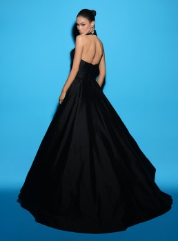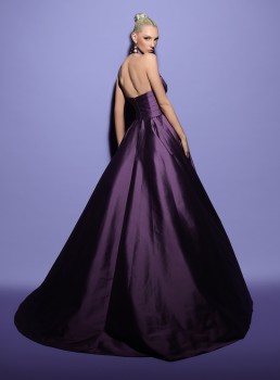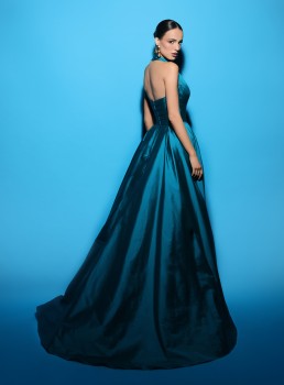 فستان مكشوف الكتفين يعرض حصرياً بمجموعة من الألوان الجريئة على تيا دريس ضمن كولكشين فساتين طارق إيديز.
