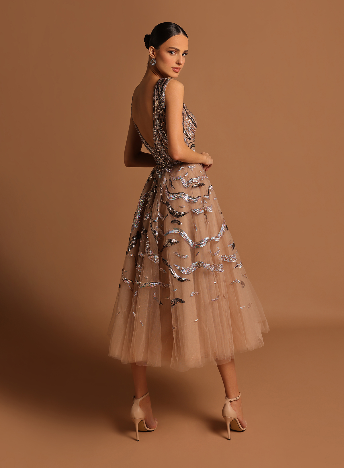 فستان ترتر منفوش متوفر حصرياً على تيا دريس ضمن أحدث كولكشن للمصمم طارق أيديز.
