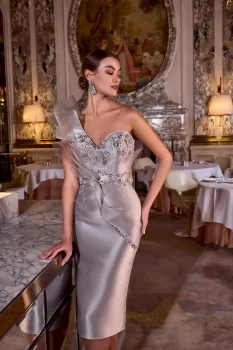 فستان مصنوع من القماش الميكادو بكتف واحد مع فتحة جانبية واحدة وسحاب خلفي مخفي لضمان مظهر ليعكس جمالك في مناسبتك.
