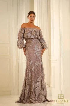 فستان عصري بتصميم وقصة ممبزة من كولكشن تيراني كوتور الجديد لـ 2025.