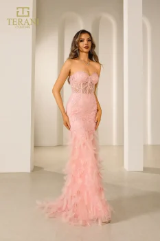 فستان بكود 251P4002 مناسب للحفلات والسهرات المسائية مطرز بدون حمالات متوفر الآن على تيا دريس.