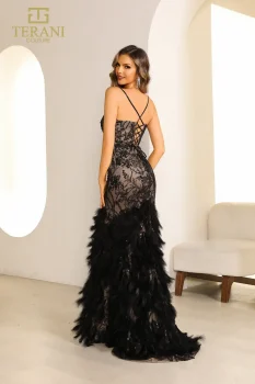 فستان طويل من التول مطرز بفتحة أمامية وفتحة على شكل حرف V متوفر الآن على تيا دريس.