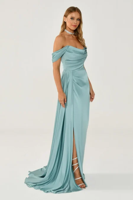 فستان أوف شولدر بقصة مميزة وألوان جريئة تعكس جمالك من تصميم تيا كوتور متوفر الآن على تيا دريس.
