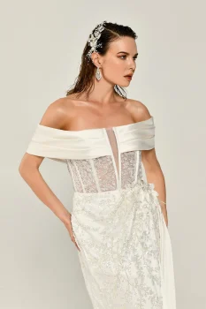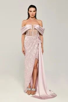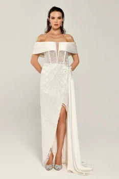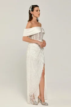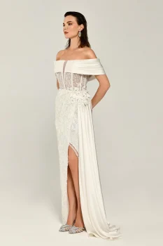 فستان أو ف شولدر طويل وخصر شفاف وفتحة أمامية متوفر على تيا دريس.