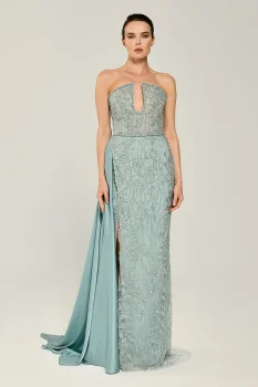 تسوقي الأن أحدث فستان توب مطرز بتصميم راقي من فساتين السهرة المتوفرة الآن على تيا دريس.