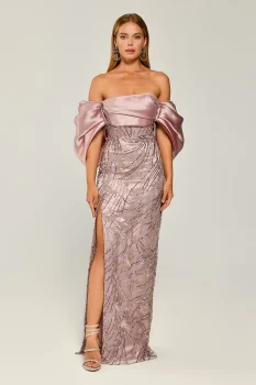 فستان سواريه بتصميم راقي وأنيق، يضيف لمسة ساحرة لإطلالتك متاح الآن على متجر تيا دريس.