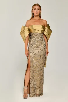 فستان سواريه بتصميم راقي وأنيق، يضيف لمسة ساحرة لإطلالتك متاح الآن على متجر تيا دريس.
