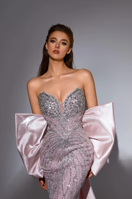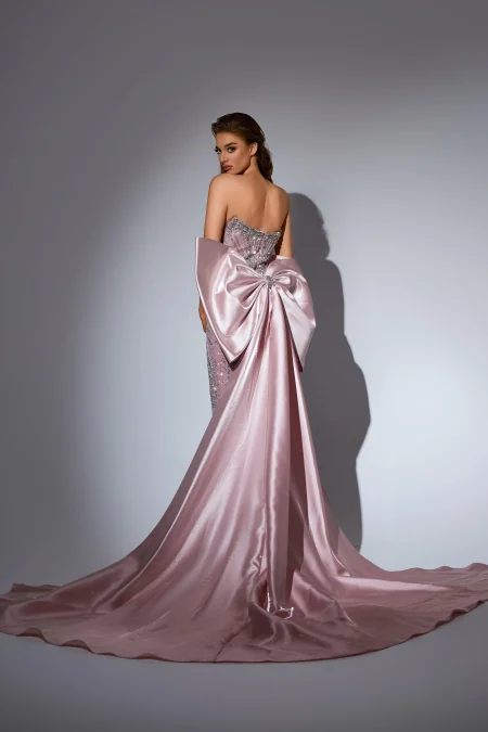 فستان مشغول بالكامل بالاحجار والكرستال مع قطعة خلفية تفته