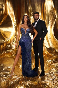 فستان بتصميم أنيق من كوليكشن تيا كوتور 2025 يتميز باللون الأزرق الملكي الذي يضفي لمسة من الفخامة.