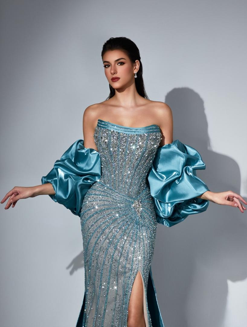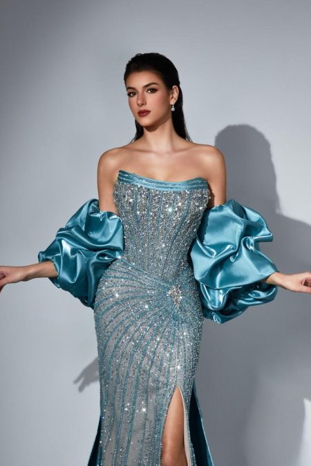 فستان باللون الاخضر مشغول بشكل كامل من الكولكشن الملكي الجديد