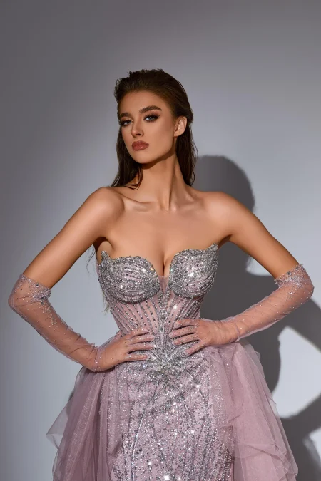 فستان فاخر من مجموعة تيا كوتور المميزة مشغول بالكامل من التل والكرستال والشوارفسكي