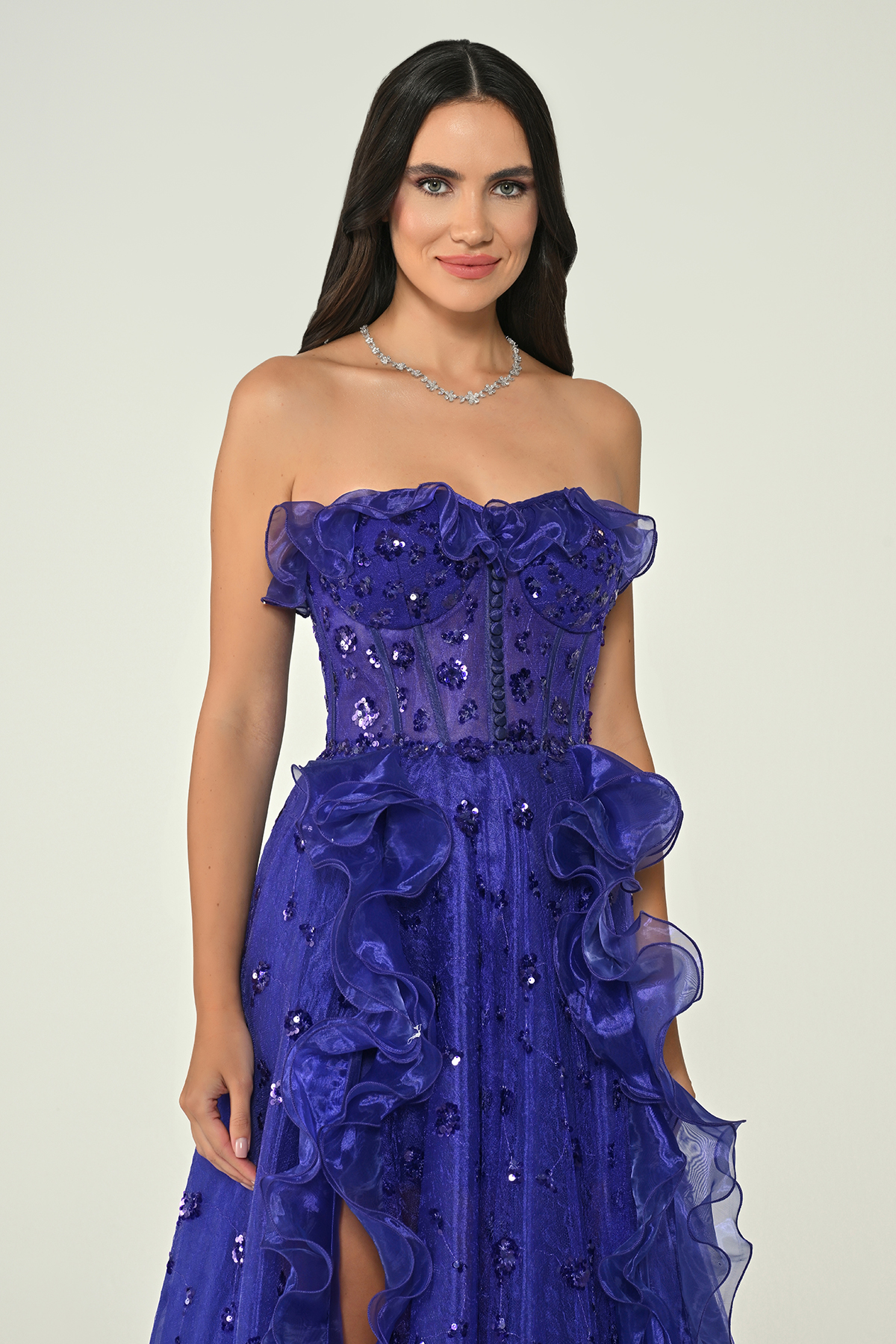 فستان بقصه صدر توب غير مخصر مشغول بالترتر