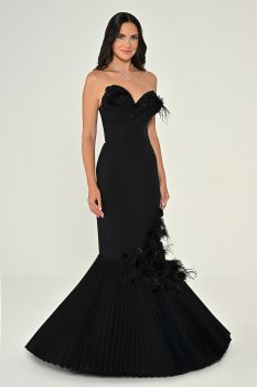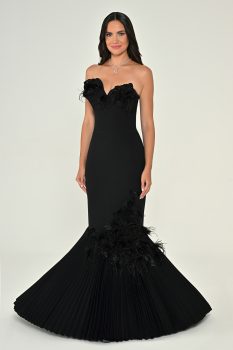 فستان بقصة السمكة بالتل من الاسفل والكريب من الاعلي