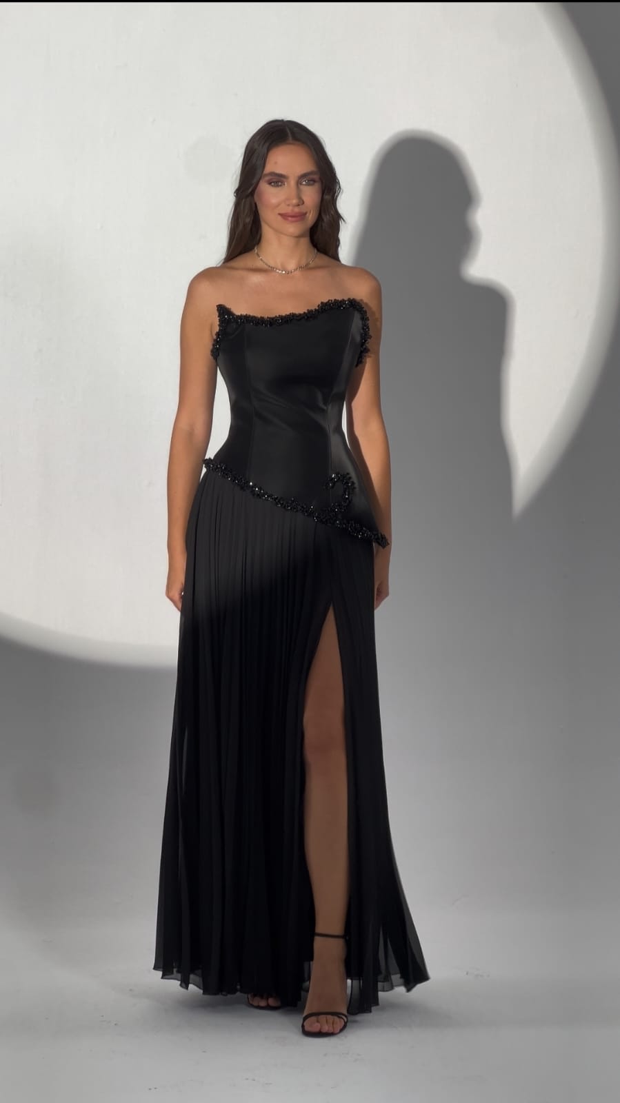 من كولكشن 2026 للبراند التركي الفا بيتا فستان بقصة صدر مختلفة بقطعة واحدة من الجلد والبليسيه