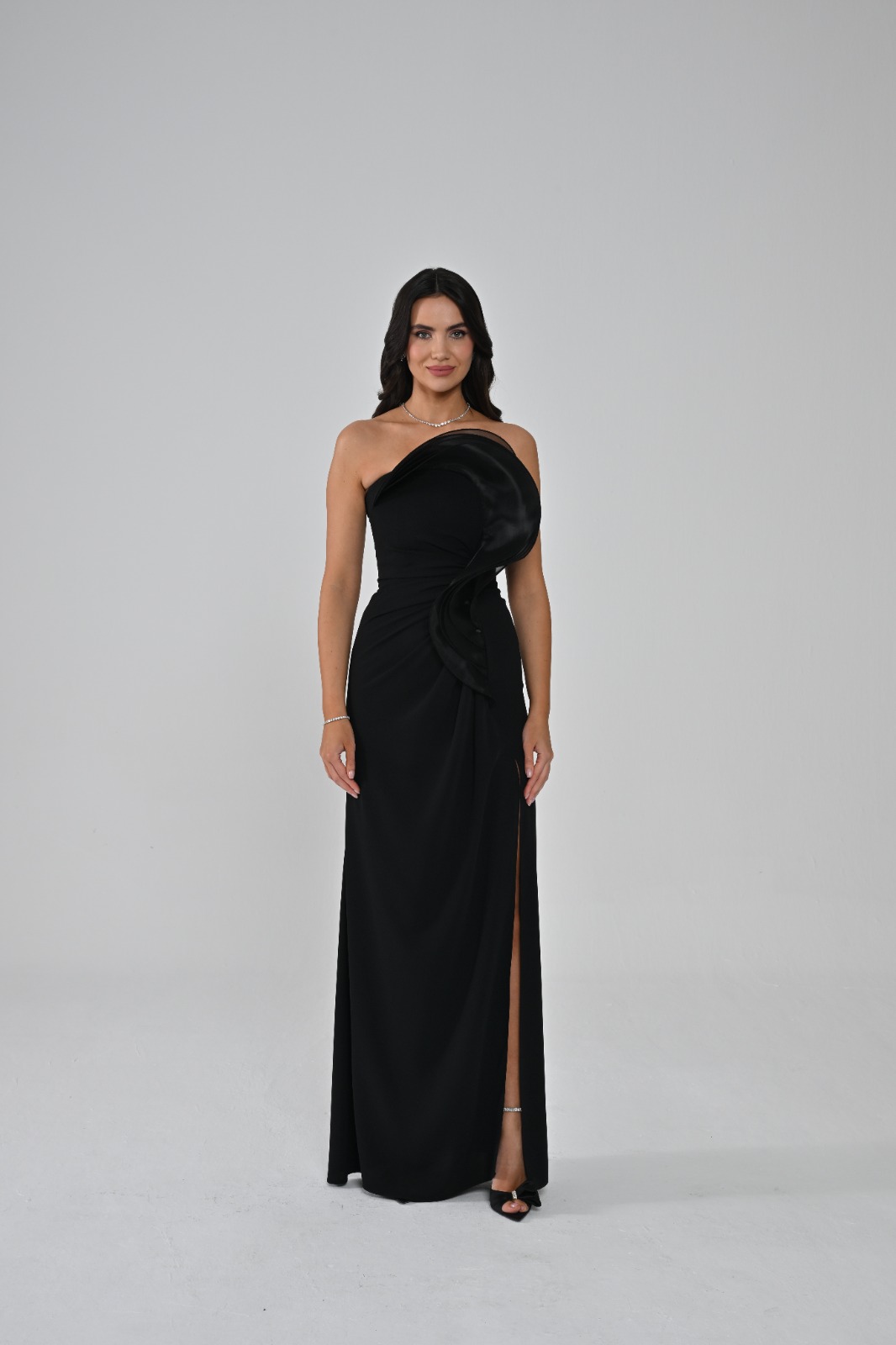 فستان من التفته بفتحة ساق وقصة صدر مختلفة من كولكشن الفا بيتا 2026
