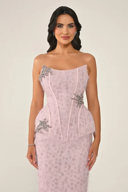 فستان مشغول بقصة توب مخصر بقصة جديدة من كولكشن الفا بيتا الجديد