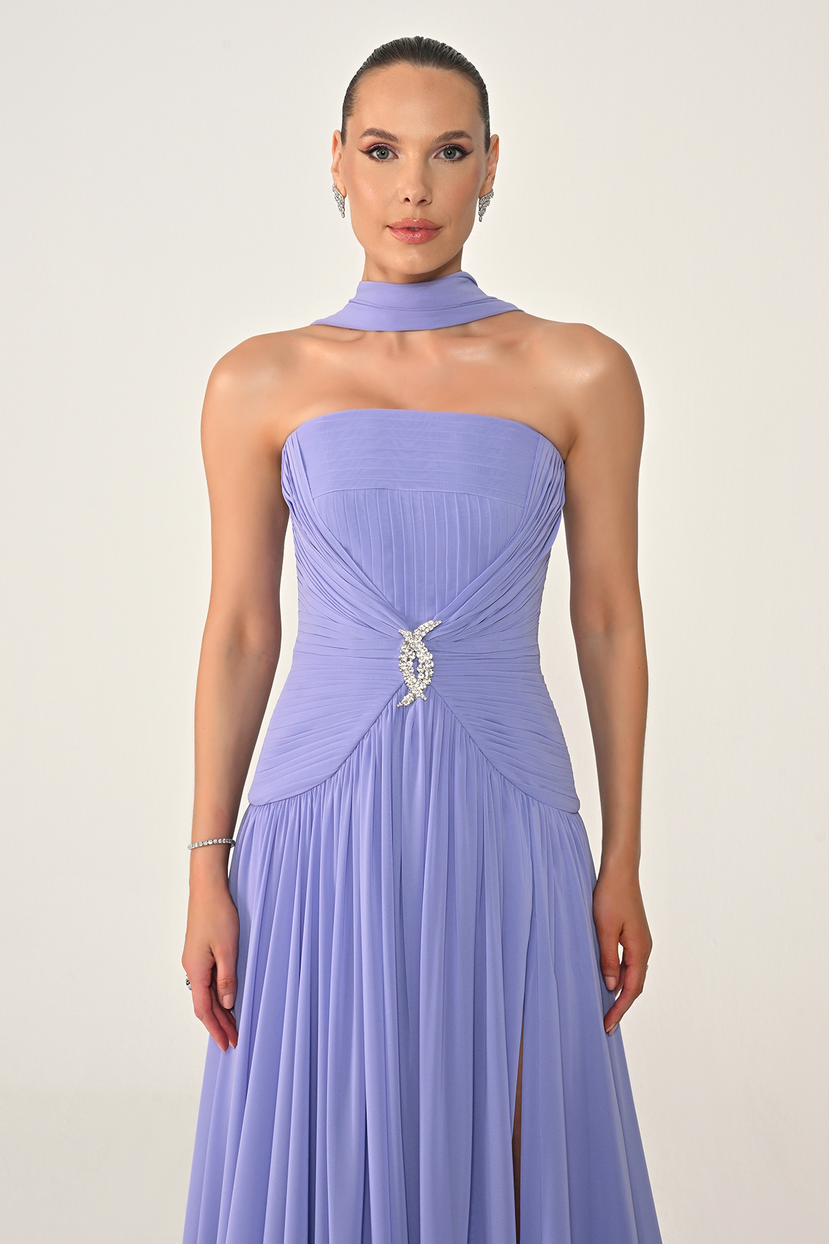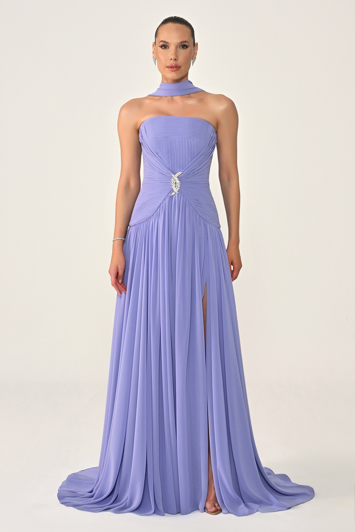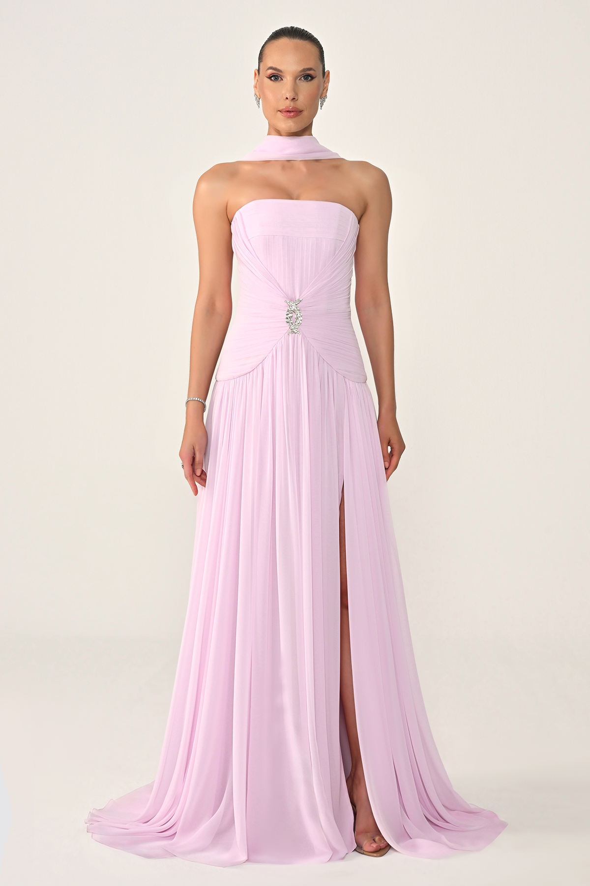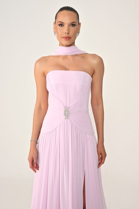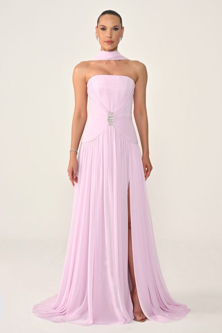 فستان من الشيفون الراقي الفرنسي بقصة صدر مختلفة جميلة