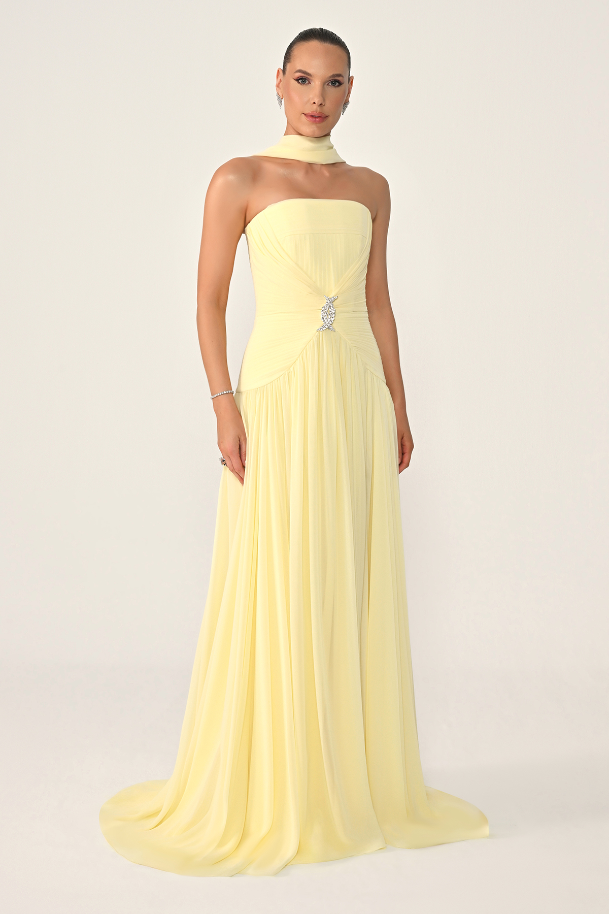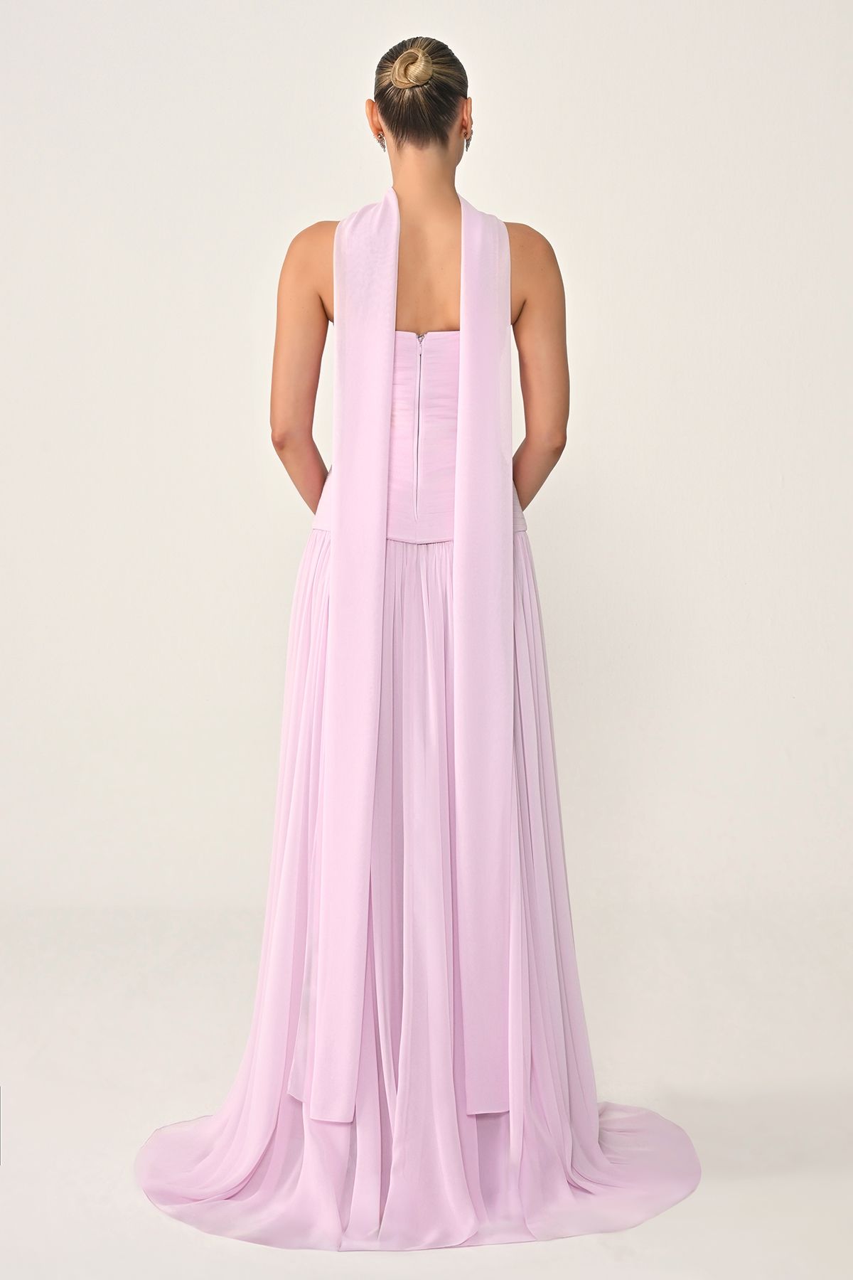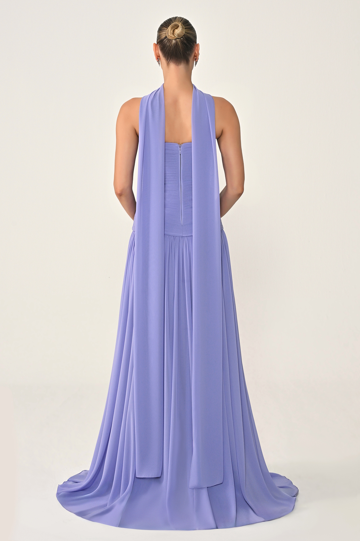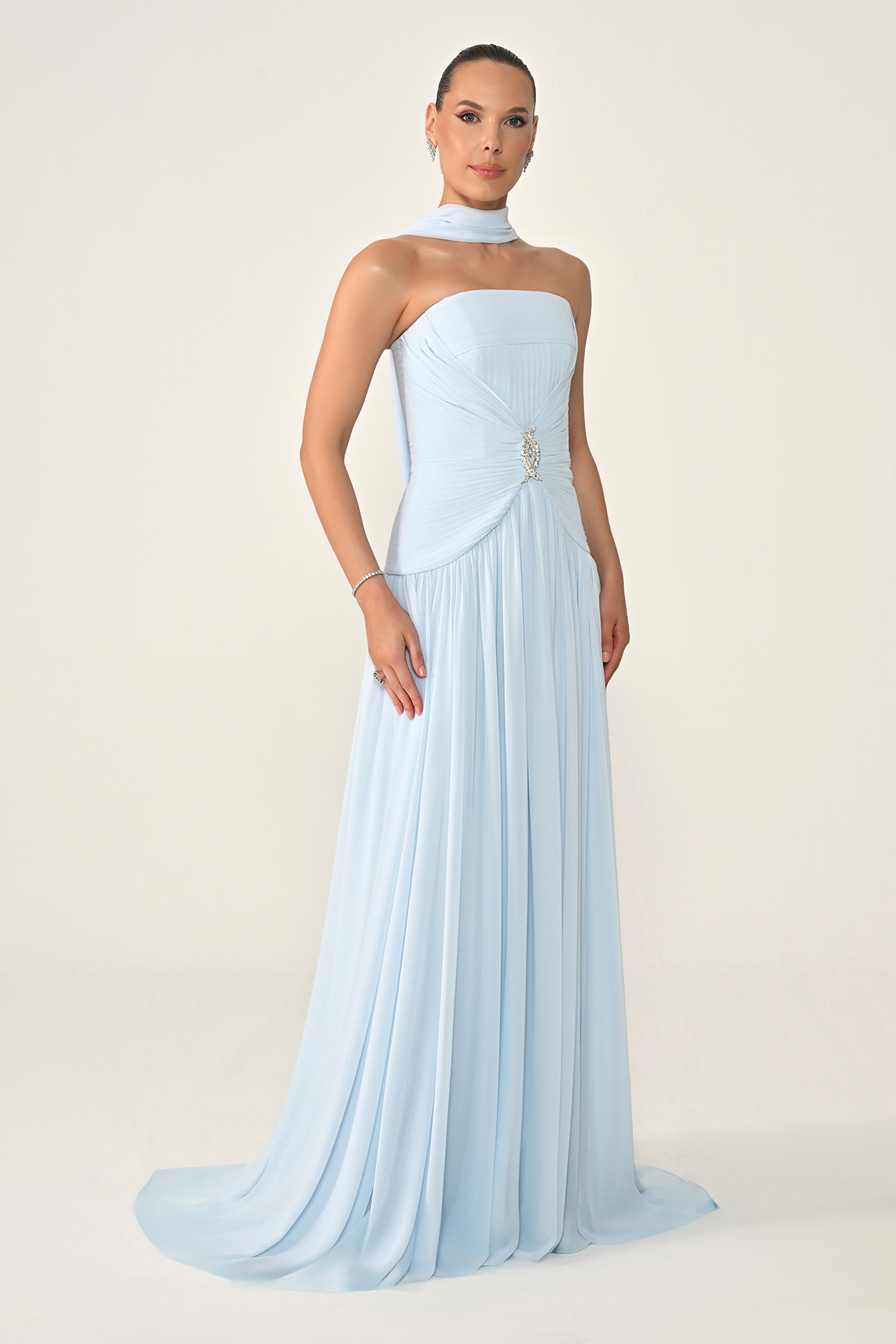 فستان من الشيفون الراقي الفرنسي بقصة صدر مختلفة جميلة
