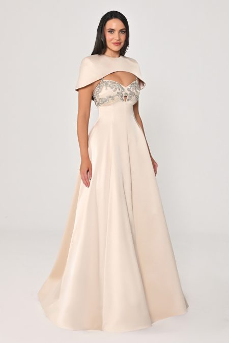 فستان من التفتة بقطعة علوية تفك وتتركب مشغولة من منطقة الصدر