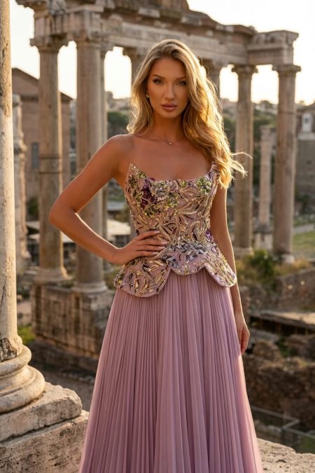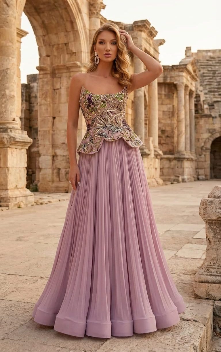 فستان توب مشغول من الاعلي بليسيه من الاسفل من الكولكشن الجديد للمصمم ان كوتور محمد السلكا
