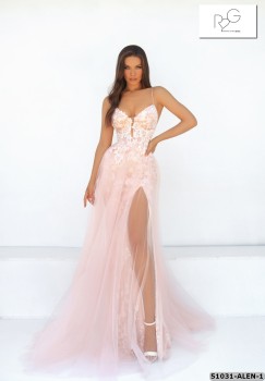 فستان طويل غير مخصر بفتحة ساق يعرض بشكل حصري علي تيا دريس من فساتين طارق ايديز 2022