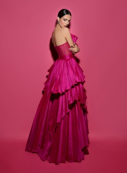 فستان تفته مكسر بطريقة مبتكرة من كولكشن 2024 للمصمم العالمي طارق ايديز