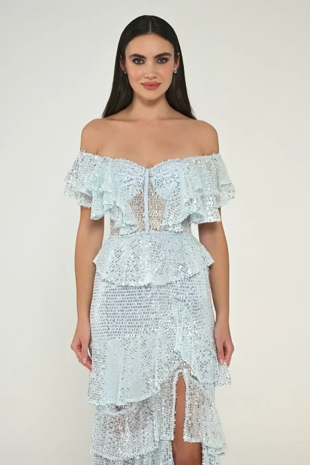 تألقي بفستان بكود 6533 ALFABETA بتصميم أوف شولدر متوفر على متجر تيا دريس.