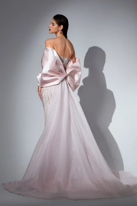 فستان فاخر مخصر بقطعة خلفية مرصع بالاحجار والكرستال
